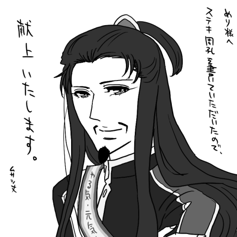 1月26日日記の添付した「めずらしくロリじゃない孔明」を見ためり様が、お嫁にくださいと言ってくださったので、お嫁さん仕様(文字を変えただけですが;)にして捧げたいと思います。リクで素敵瑜諸を書いてくださったのでそのお礼という意味でもぜひぜひ献上いたしたいと思います。献上するなら色くらい塗れよって話ですが、下手にいつもの調子で色塗ったらロリ率が上がる可能性があるかもしれないので白黒で失礼します;めり様、欲しいと言ってくださってありがとうございました…!